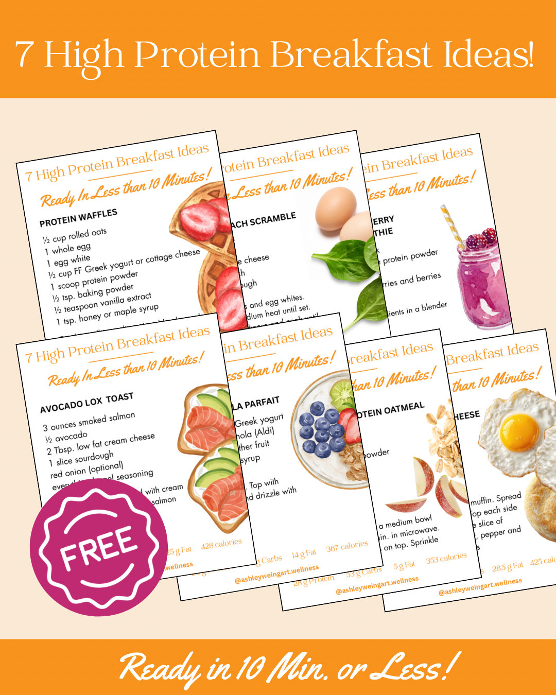 Thanks for your interest in my FREE breakfast ideas download! Let's make it easier for you to eat in the morning with these simple breakfast ideas, each macro-balanced and high in protein. All take less than 10 minutes to make!